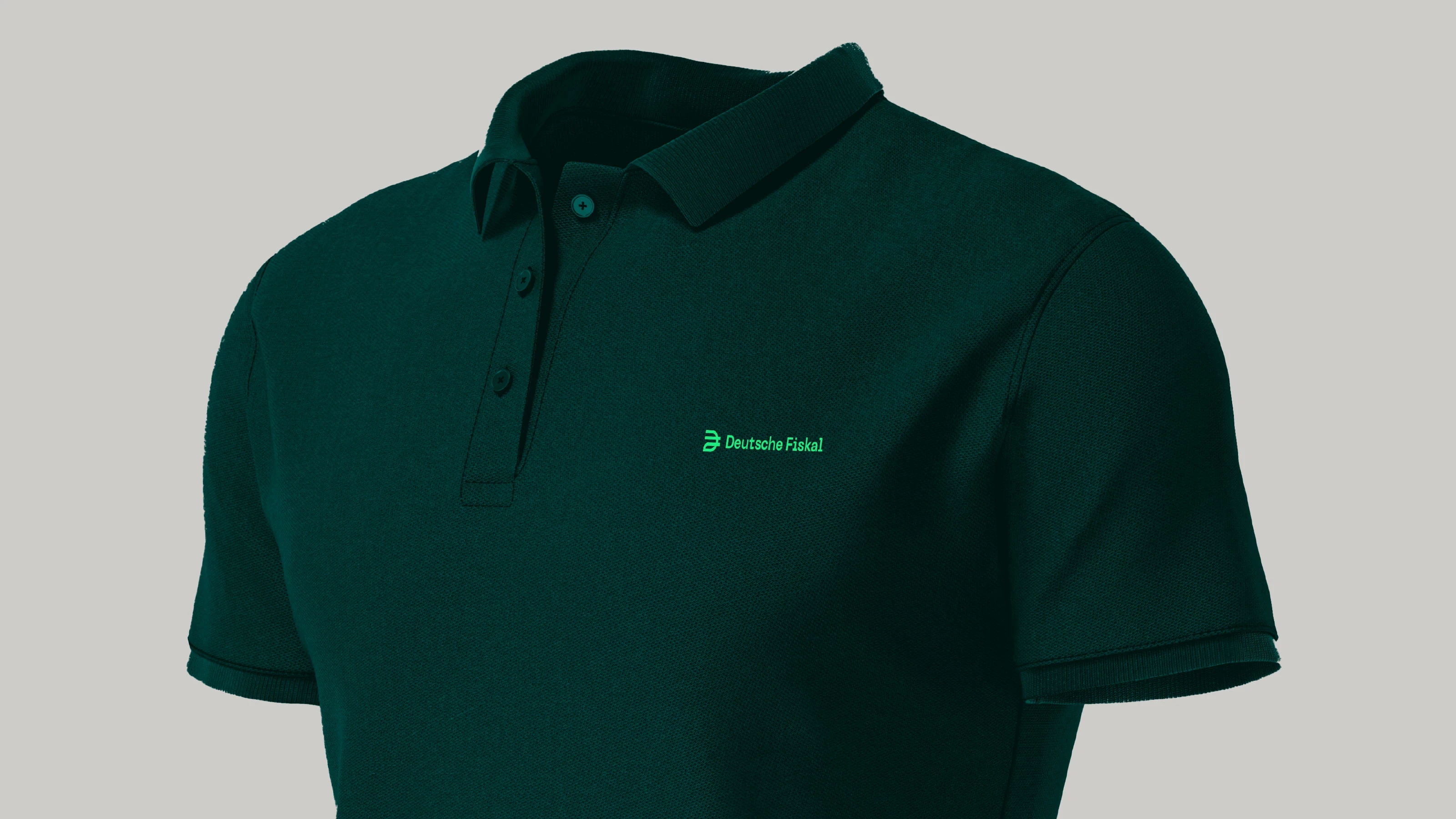 Brand Design-Konzept für Deutsche Fiskal. Das Signet kombiniert die Buchstaben D, F und das €-Zeichen und vermittelt so visuell, dass Deutsche Fiskal der maßgebliche Anbieter im Bereich der Fiskalisierung in Deutschland und Europa ist. Das Designkonzept verbindet nahtlos die Welten von Technologie und Finanzen und transportiert Vertrauen sowie technologischen Fortschritt in allen Markenelementen.