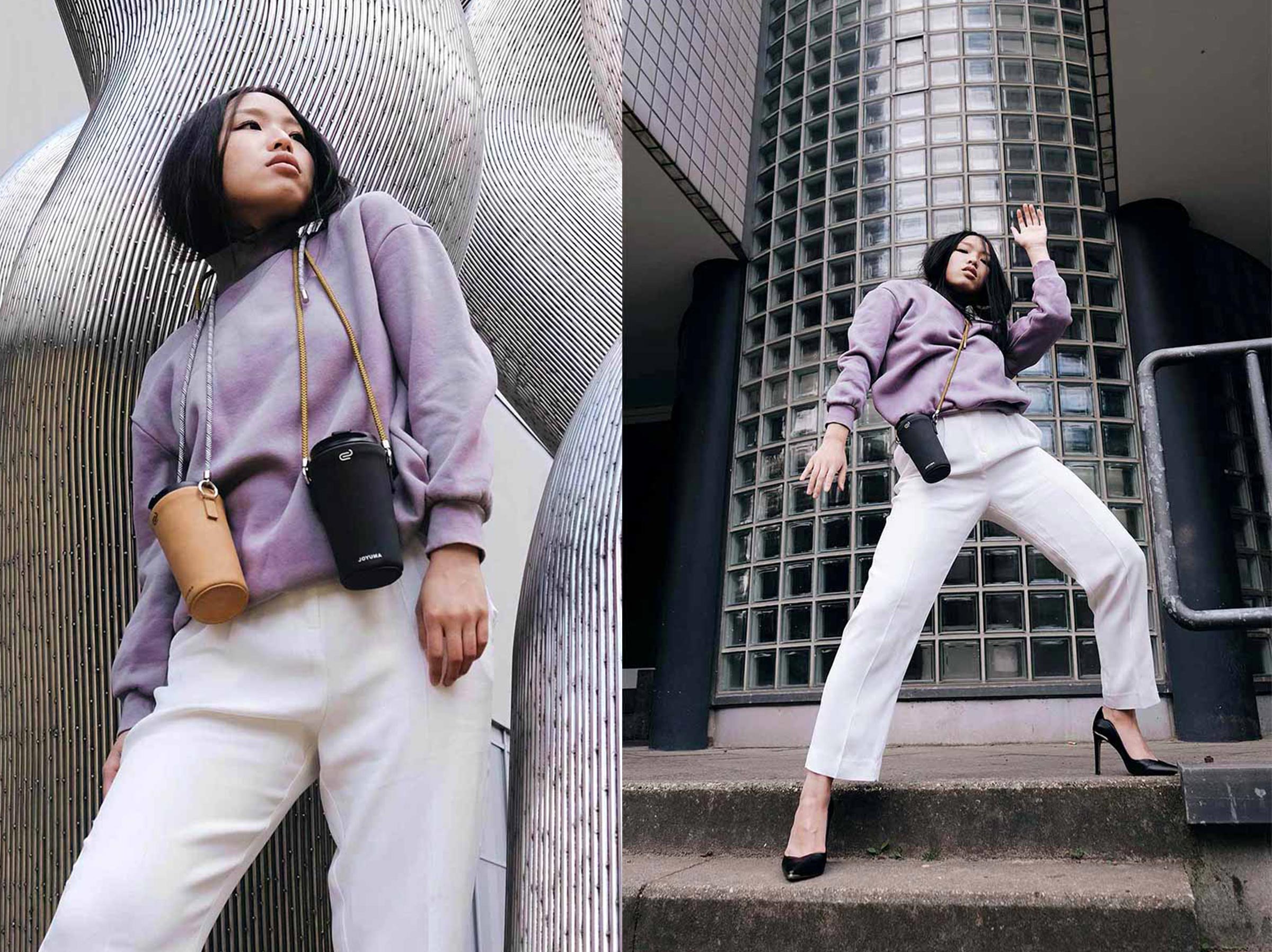 Photography was another crucial element in JOYUMA's venture. Partnering with talented photographer Carolin Thiergart, we created several series of dynamic scenes featuring the Coffee Carriers. These shoots showcased the product in motion and styled with a variety of outfits, highlighting its versatility and appeal. Carolin's expertise brought a fresh and vibrant perspective to our visual content. Each photoshoot was planned to capture the essence of JOYUMA's brand. The images not only displayed the functional aspects of the Coffee Carriers but also emphasized their aesthetic appeal, making them a desirable accessory for diverse audiences.